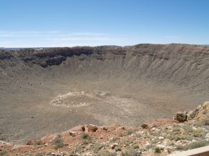 Vanmorgen zijn we vertrokken uit Holbrook en richting Winslow getrokken waar we de Meteoor Krater bezoeken waar 50.000 jaar geleden een meteoor is ingeslagen. Er is eerst onderzoek gedaan door geologen en nu wordt de krater gebruikt voor het oefenen van astronauten om het maanlandschap na te bootsen. Op het terrein van de krater staat de Apollo capsule. We bekijken eerst een film over de krater en lopen dan naar de krater zelf om een kijkje te nemen en foto’s te nemen. De krater is ontstaan door een meteoor met een doorsnee van 45 meter en heeft bij de inslag een gat gemaakt van 1 mile in diameter dus een behoorlijk gat.