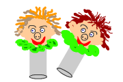 wat stof en versierselen. De poppen zijn als handpoppen te gebruiken bijvoorbeeld