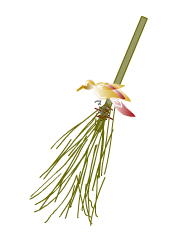 Aan de buitenkant van de bezem worden takjes in bosjes bij elkaar
