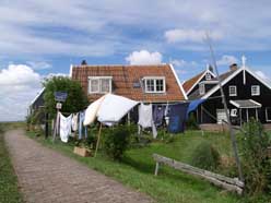 Op de boot kunnen we Marken al in de verte zien liggen. Het blijkt verder weg te liggen dan we dachten. Aangekomen in de haven van het dorp is het een gezellige drukte. We besluiten eerst koffie te drinken voordat we aan de wandeling beginnen.